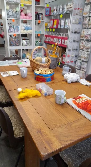A place to try and buy crafts and wool in a welcoming space with good company and conversation.